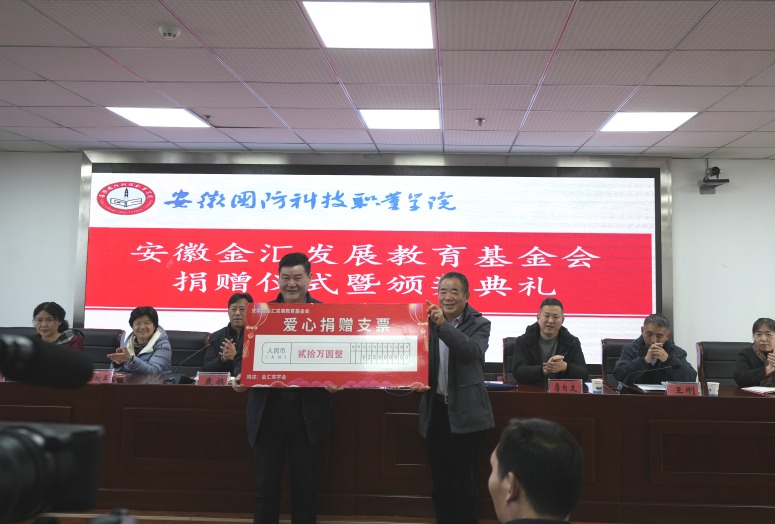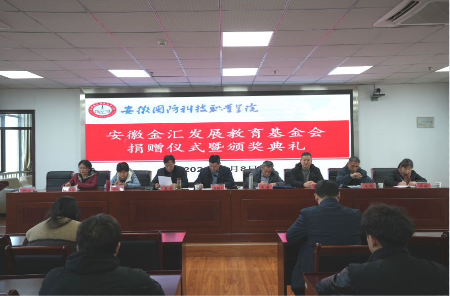 1月8日下午,安徽金汇发展教育基金会捐赠仪式暨金汇奖学金颁奖典礼在万象城官网秉心楼12楼会议室举行。校党委书记余嗣元、金汇基金会理事长王进、中国人民银行六安分行纪委书记詹自友、金汇基金会副理事长梁皖萍以及基金会嘉宾王刚、黄世芳、许敏、钟波等,校学工部、各二级学院领导,校资助中心工作人员以及获奖学生代表等参加活动。仪式由校党委委员、副校长袁旗主持。