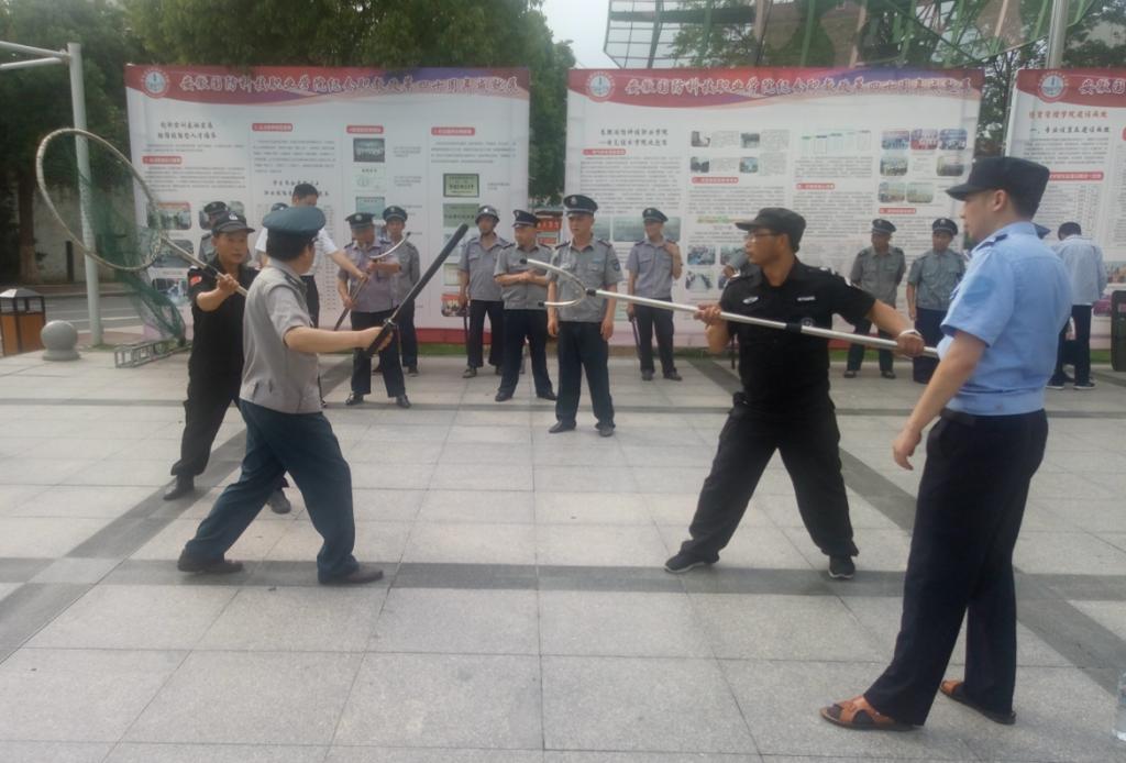 为进一步提升校园安保人员“防恐防暴”技能,增强安保人员应急处置能力,5月17日下午,学校邀请辖区望城岗派出所陈军副所长等干警在图书馆广场举行校园安保人员防恐防暴应急演练活动。