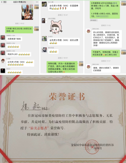 “我是一名共产党员,要认真践行党员始终把人民群众生命安全和身体健康放在第一位的工作宗旨,虽然因疫情封控没能回到单位和同事们一起参加防疫工作,但在这个防控关键时期,积极投入到志愿者工作中,和所有奋战在抗疫战线上的同志一样,尽自己最大的努力,全力以赴做好各项工作,为打赢这场没有硝烟的防疫战而努力,用实际行动去诠释共产党员在关键时期的使命与担当。”杨超在快结束这次志愿工作中感慨的说道,这一句句铮铮誓言是他对党和人民殷殷嘱托的承诺,是功成不必在我,功成必定有我的使命和担当,未来属于青年,希望寄予青年,作为青年教师的他,是青年一代学习的榜样和前进的目标。