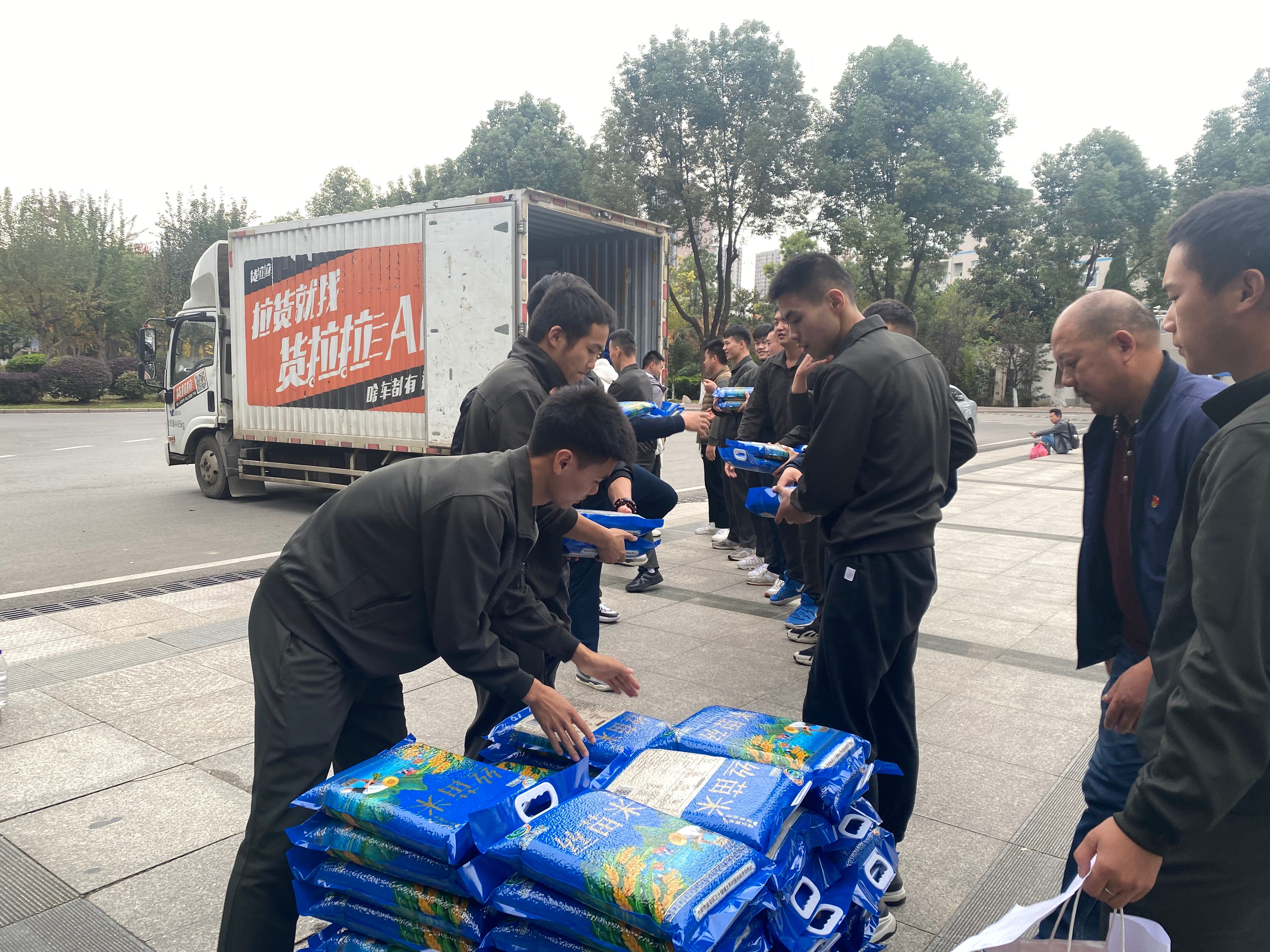 退役军人协会成员提前在图书馆前侧集合整队,等到扶贫物资车辆到达,队员们队列整齐、分工明确,充分发挥不怕苦不怕累的精神,迅速将车上的1千多袋大米搬运到图书馆前侧、一食堂、二食堂主食间摆放整齐。经过一个多小时的搬运,队员们的额头上都沁出了豆大的汗珠,衣服也被汗湿了,但是他们脸上却洋溢着笑容,说这就是我们价值的体现。