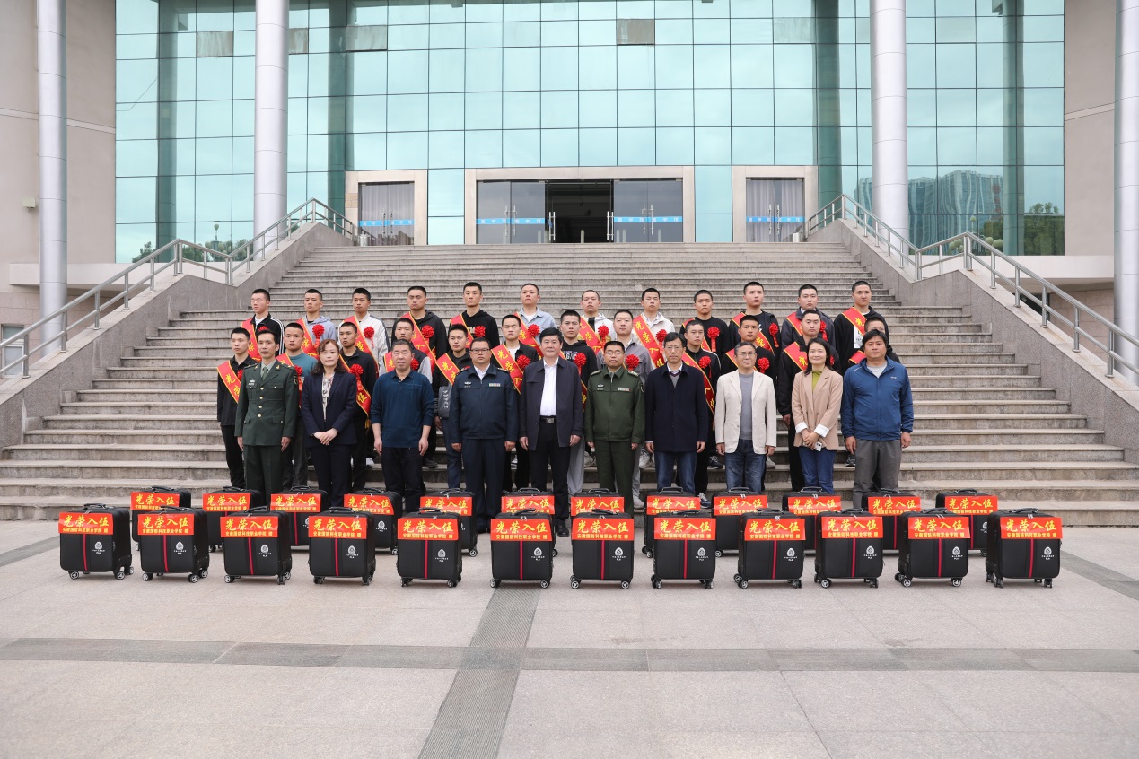 2023年3月11日学校党委书记余嗣元、六安军分区政治工作部主任胡忠喜、金安区人武部部长张家强等领导参加2023年春季新兵入伍欢送会
