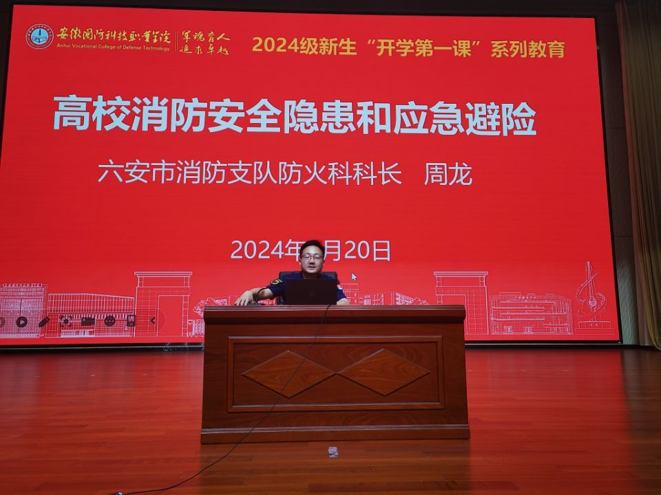 9月20日晚,六安市消防救援支队防火科科长周龙为新生开展高校消防安全隐患和应急避险知识专题讲座。周龙讲解了消防的起源、火灾现状、事故案例、初起火灾扑救及家庭防火和逃生方法等知识。他通过生动鲜活的事故案例,让学生们切身感受到火灾带来的危害,增强了学生的消防安全意识,掌握了消防器材的使用方法和火灾逃生方法。
