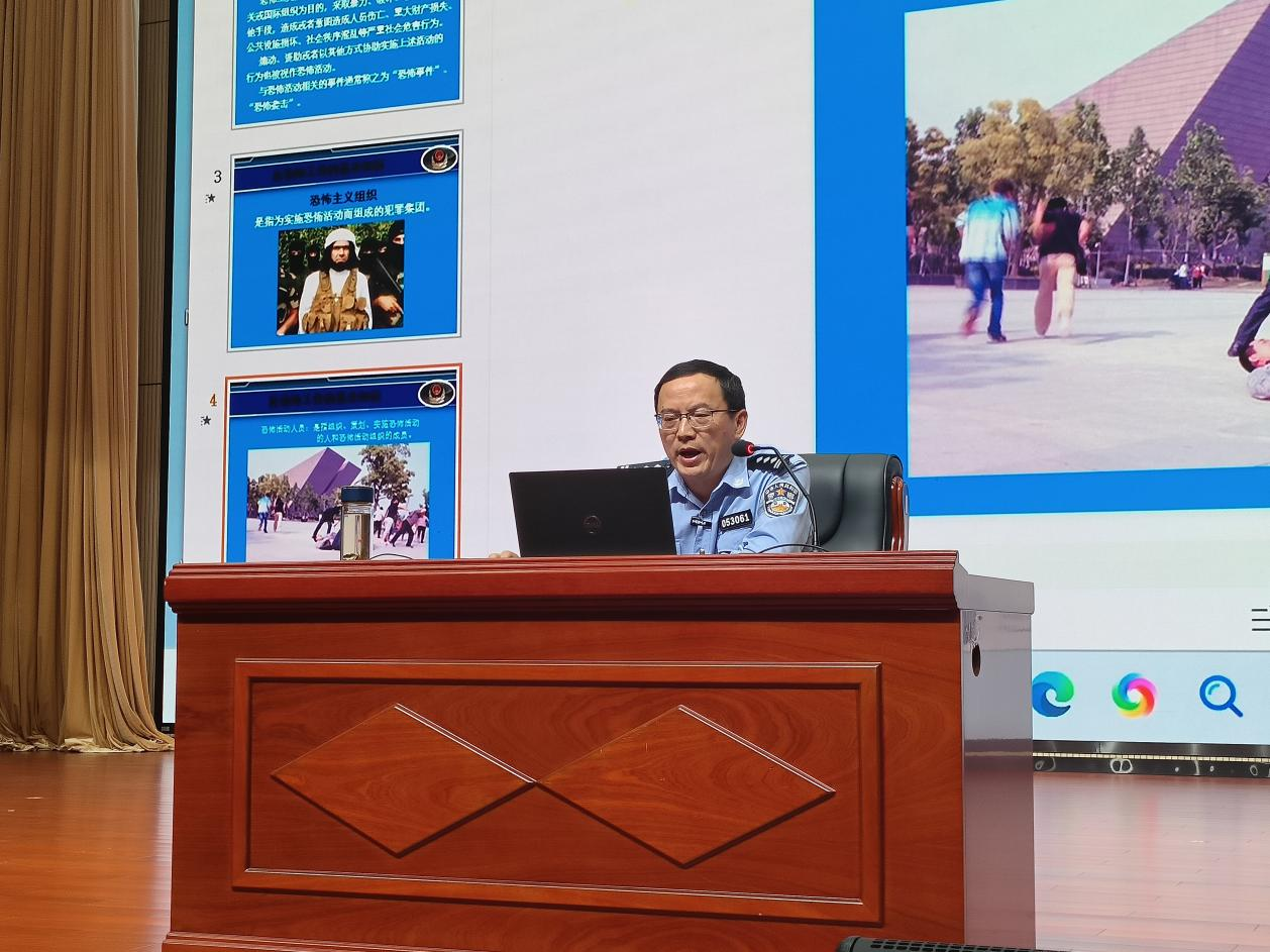 陈宗权为新生讲授在校学生安全教育及校园反恐教育课