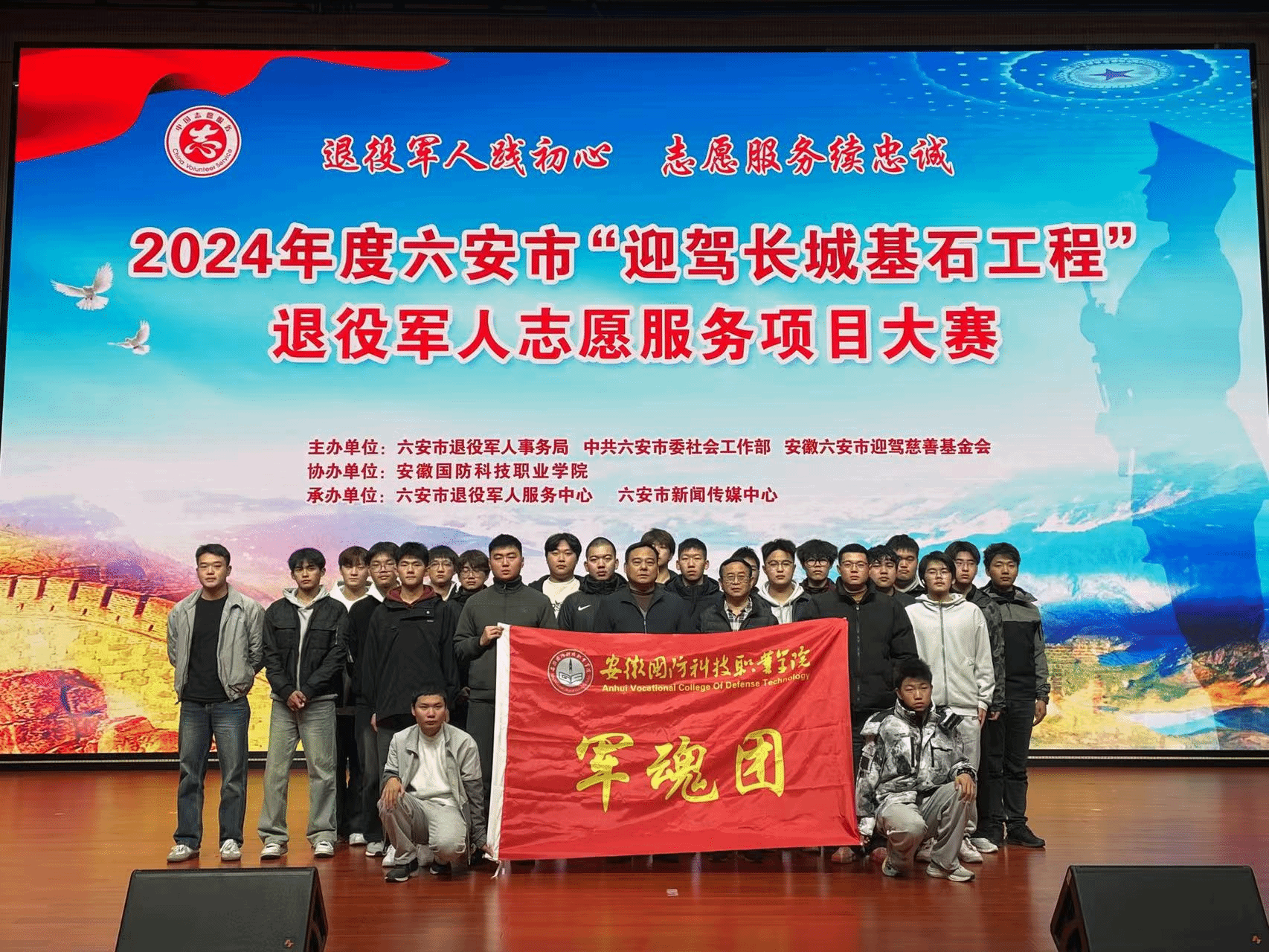 本网讯(学生通讯员 徐玉轩)11月27日下午,军魂团组织500余名学生在产教融合中心报告厅参加了2024年度六安市“迎驾长城基石工程”退役军人志愿服务大赛。本次大赛由六安市退役军人事务局、中共六安市委社会工作部、安徽六安市迎驾慈善基金会主办,安徽国防科技职业学校协办,六安市退役军人服务中心、六安市新闻传媒中心承办。