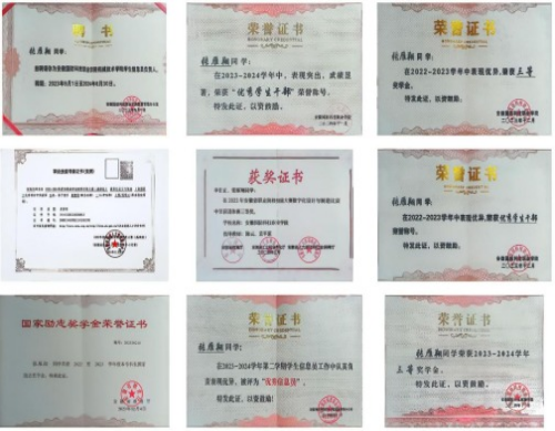 张雁翔同学凭借自身努力刻苦钻研专业课知识,取得了班级成绩排名第一,2023年、2024年荣获“国家励志奖学金”、校级三等奖学金,获评“优秀学生干部”称号2次。