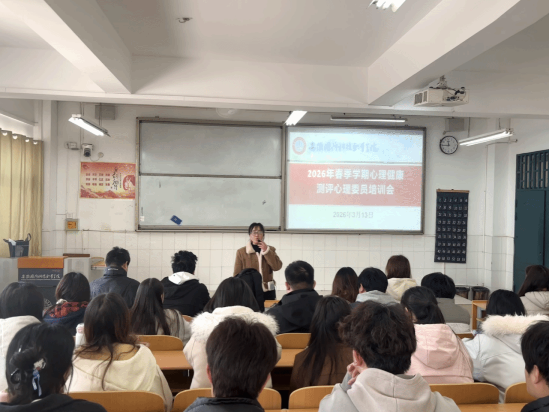 本网讯(学生处 费思佳)为了做好2026年春学期大学生心理健康测评工作,动态掌握全校学生心理健康状况,提供心理健康服务,3月13日中午,心理健康教育中心在二教105教室召开春学期全体班级心理委员培训会,培训由心理健康教育中心主任戴柳主持,心理健康教育中心费思佳l老师和全体在校班级心理委员参加了培训。