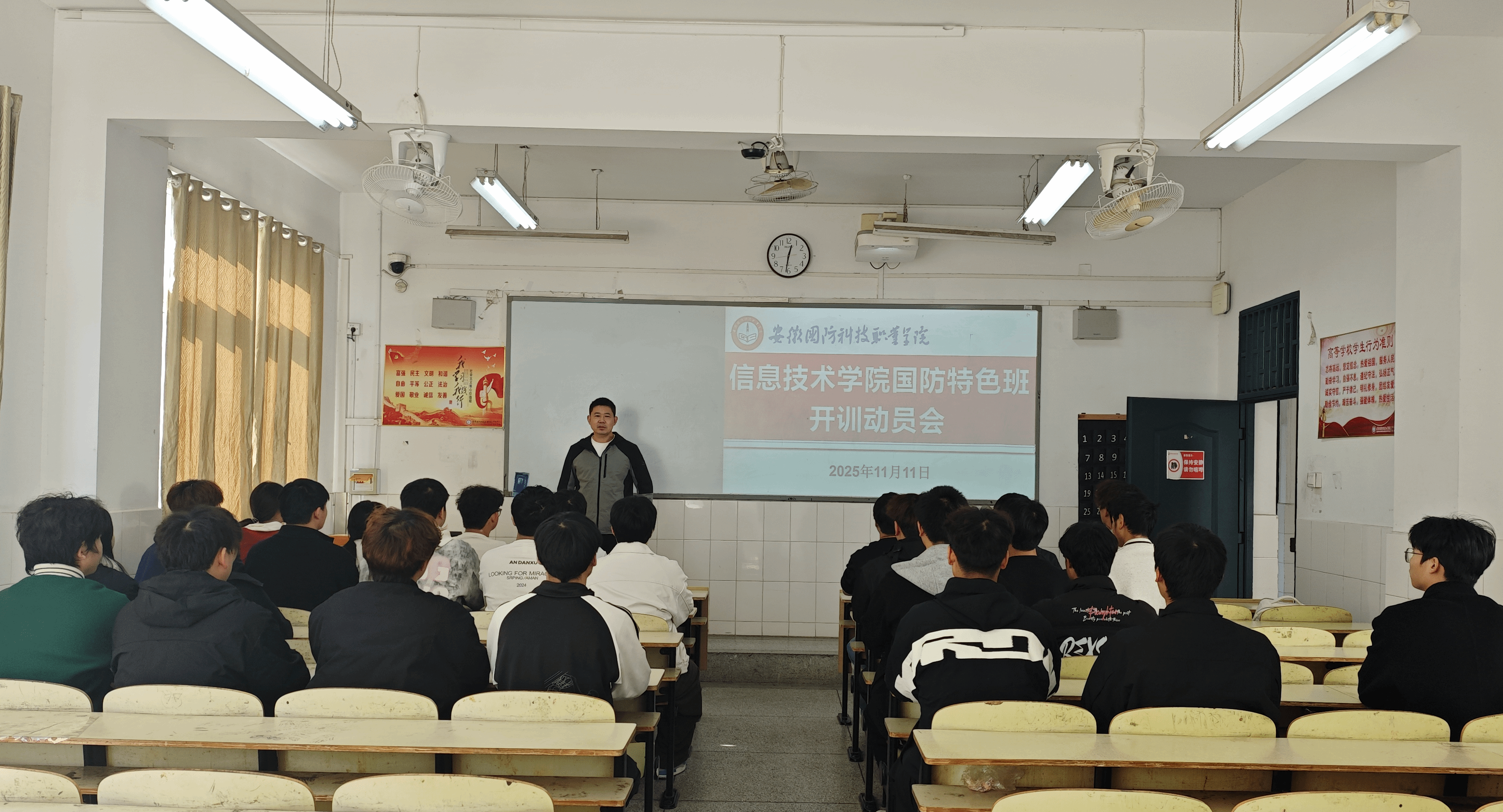 本网讯(信息技术学院 赵德志)为深入贯彻学校国防教育工作部署,进一步提升学院学子国防素养与责任担当,近日,信息技术学院国防特色班开训动员大会在二教204教室举行。退役复学优秀学生代表及国防特色班全体学员参加,辅导员兼军事训练指导赵德志主持大会并讲话。