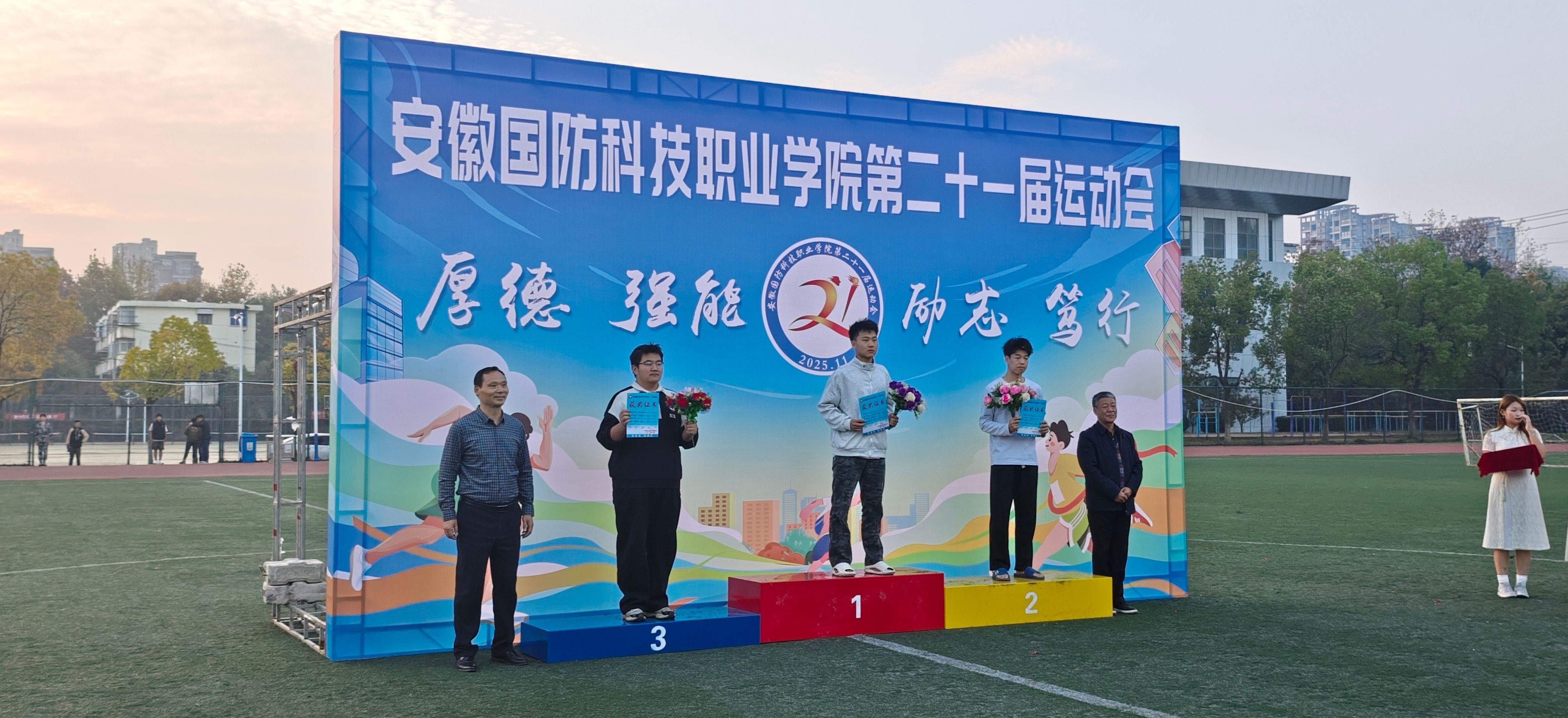 这份荣耀,是日常训练的汗水凝结,是赛前备战的心血沉淀,更是信院学子“敢拼敢赢、永争第一”精神品格的生动写照。无论是跑道上咬紧牙关的最后冲刺,还是沙坑前蓄势待发的奋力一跃;无论是接力赛中信任传递的默契眼神,还是领奖台上相拥欢呼的热泪盈眶,每一个瞬间都在诉说着:信院人,既能勇攀技能高峰,亦能在运动赛场绽放光芒!