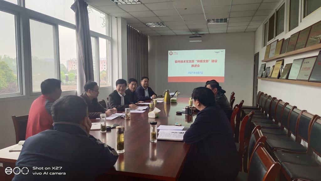 会议首先,信息技术学院党总支副书记杨庆颖从“三会一课”的精心组织、“三微一家”助力党员教育、“党建+”系列活动的开展、全国双创平台建设等四个方面对样板支部的创建情况、已取得的成效及存在的困难、下一步建设计划进行了汇报。