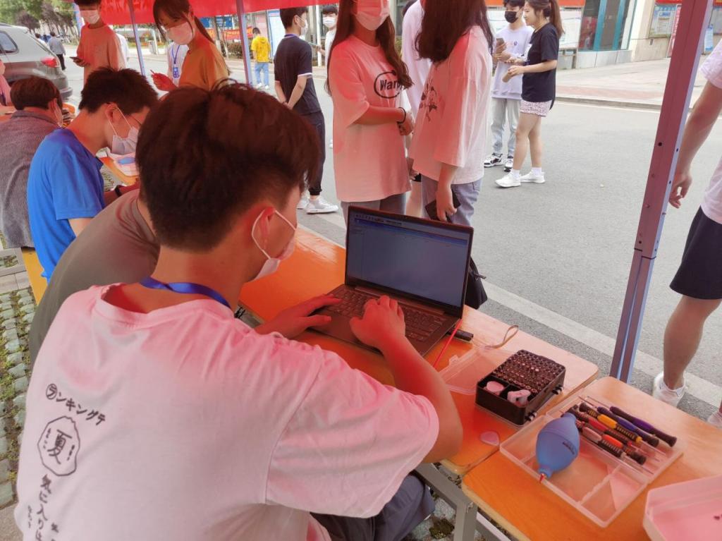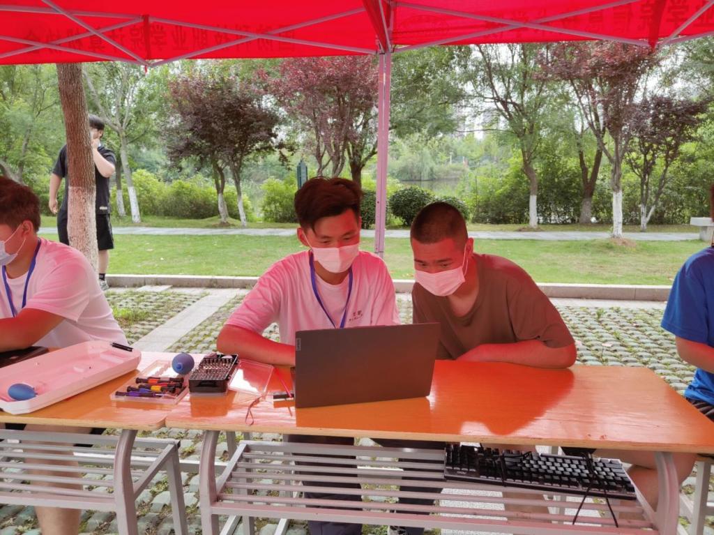 即使天气炎热,仍然抵挡不了老师、同学们的热情。在学院专业老师的带领和指导下,同学们积极主动地为全校师生解决各类电脑软、硬件问题。闲暇时分,老师们还给同学们讲解一些专业性知识,共同讨论技术难题。