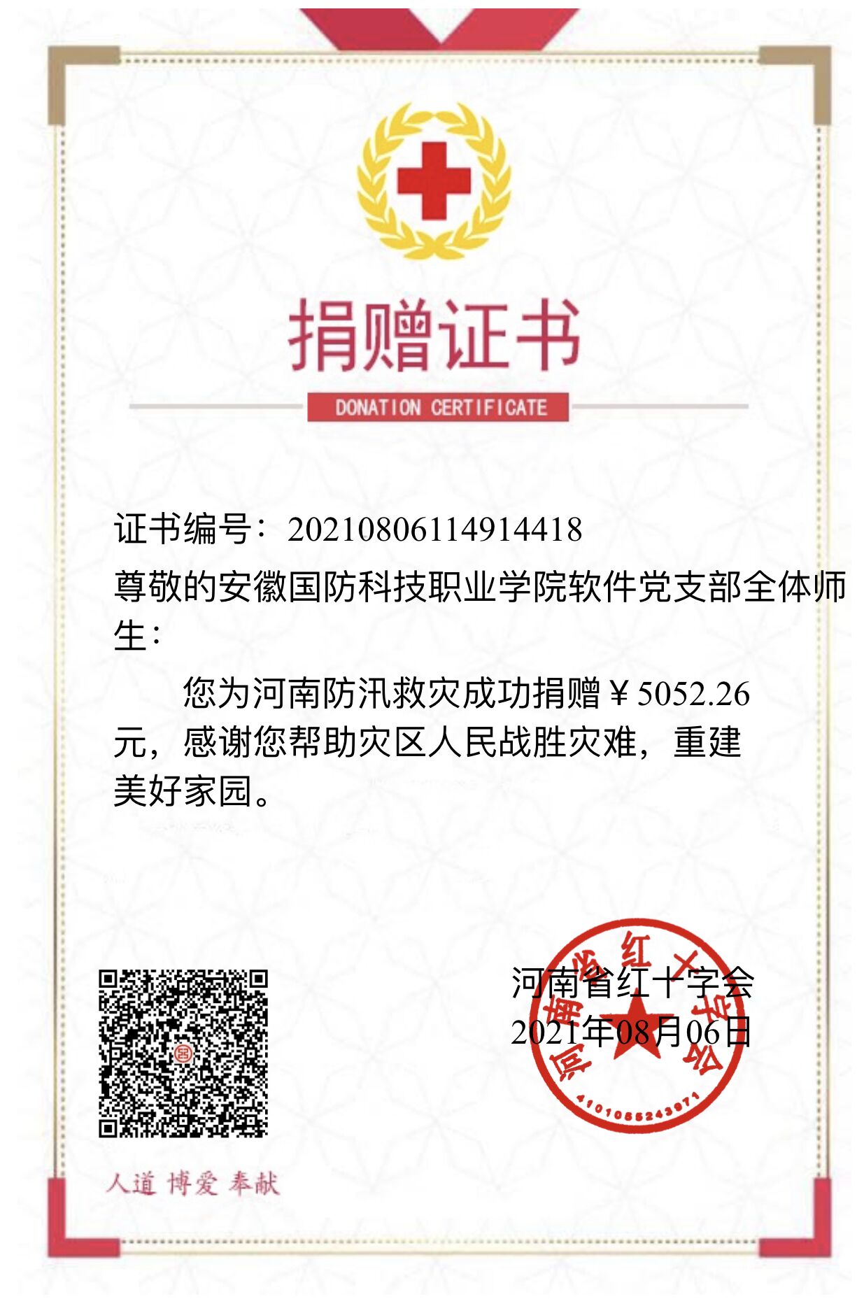 本网讯(信息技术学院 马士君)近日,河南遭受严重洪水灾害,中原大地的汛情灾情深深牵动着全国人民的心,也牵动着万象城体育awcsport软件党支部全体党员的心。软件党支部坚决贯彻落实习近平总书记对防汛救灾工作作出的重要指示精神,率先发挥全国高校样板党支部(培育单位)的先锋模范作用,7月29日,支部发出援助河南受灾群众的募捐倡议书,迅速组织广大党员师生及入党积极分子开展救灾捐赠活动,希望大家一起,发扬“一方有难,八方支援”的传统美德,共同参与到洪灾救助和灾害重建中来,与河南在一起,共渡难关!