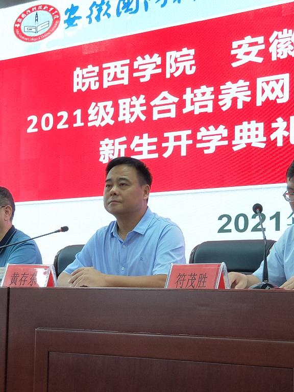 接下来,符茂胜院长向新生致辞,他强调皖西学院将协同国防学院共同做好人才培养工作,他介绍了皖西学院办学历程及学科建设、学术成就、学者队伍、学生培养等方面的情况、联合培养的合作历程,强调联合办学是教育部、教育厅的方针政策。最后,符茂胜院长从做人、做事、专业学习三个方面对全体新生提出了具体要求,希望同学们志存高远,厚德载行,勤于思考,勇于实践!