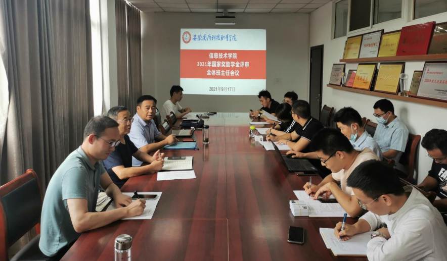 为贯彻落实好国家资助政策,扎实做好学生资助工作,根据学校《关于做好学校2021年国家奖助学金评审推荐工作的通知》(校学函〔2021〕45号)文件精神,信息技术学院于9月17日下午在知行楼304会议室召开了学生资助全体班主任工作会议。学校党委委员信息技术学院院长黄存东、信息技术学院党总支书记孙武、全体辅导员、班主任参加了会议,会议由信息技术学院党总支书记孙武主持。