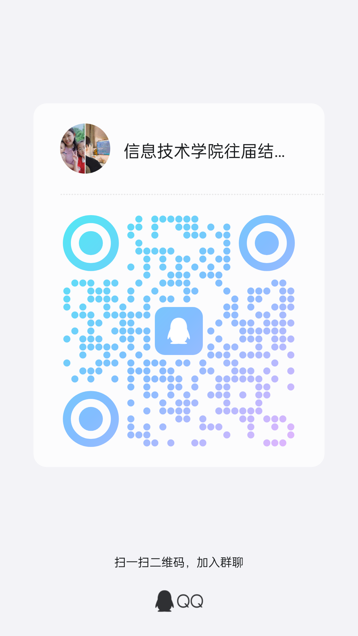 为做好往届结业学生后期毕业资格认定和毕业手续办理,现建立信息技术学院往届学生毕业认定服务群(QQ群号643110585)。请各位因课程学分、素质拓展学分未修满,目前处于结业状态的同学入群。