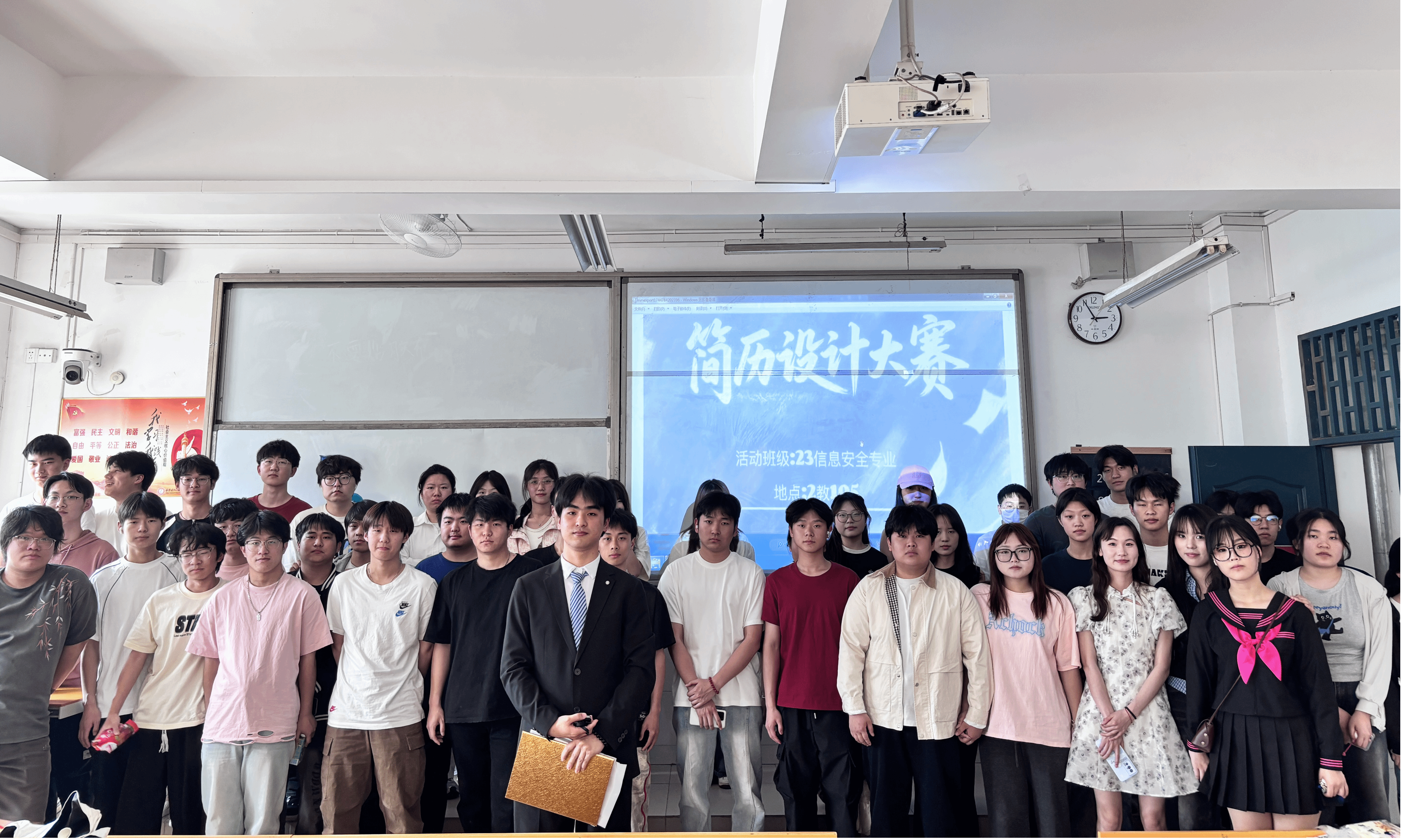 本网讯(信息技术学院 王鹏飞)为进一步提高学生职业规划能力和求职技巧,提升同学们制作个人简历的能力以及参加职场应聘的技巧,自信应对日趋严峻的就业市场,充分做好就业准备。4月16日,信息技术学院开展了简历设计及演讲主题活动。23级信息安全技术应用专业全体学生参与了此次活动。