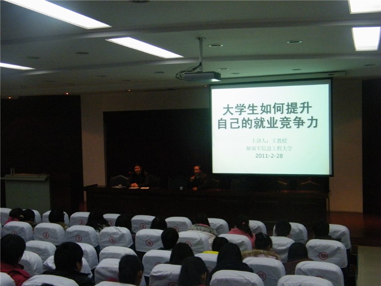 讲座上,王恒桓教授对当前的就业形势进行了剖析,指出:作为高职生,要想在日趋激烈的就业市场上获得满意的职位,不仅要了解大局、认清形势、确立合适的从业方向,更重要的是客观全面的评价自己,树立竞争意识,并不断用知识充实自己,以自信的姿态迎接即将到来的挑战。会上,王教授还就自考本科一事与在座的同学们进行了充分的交流。