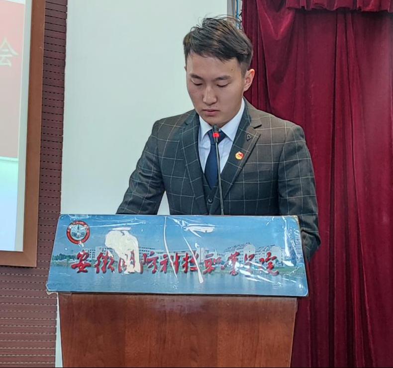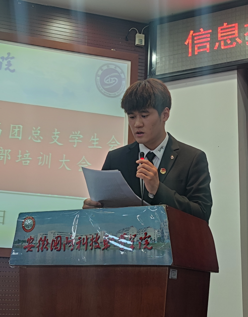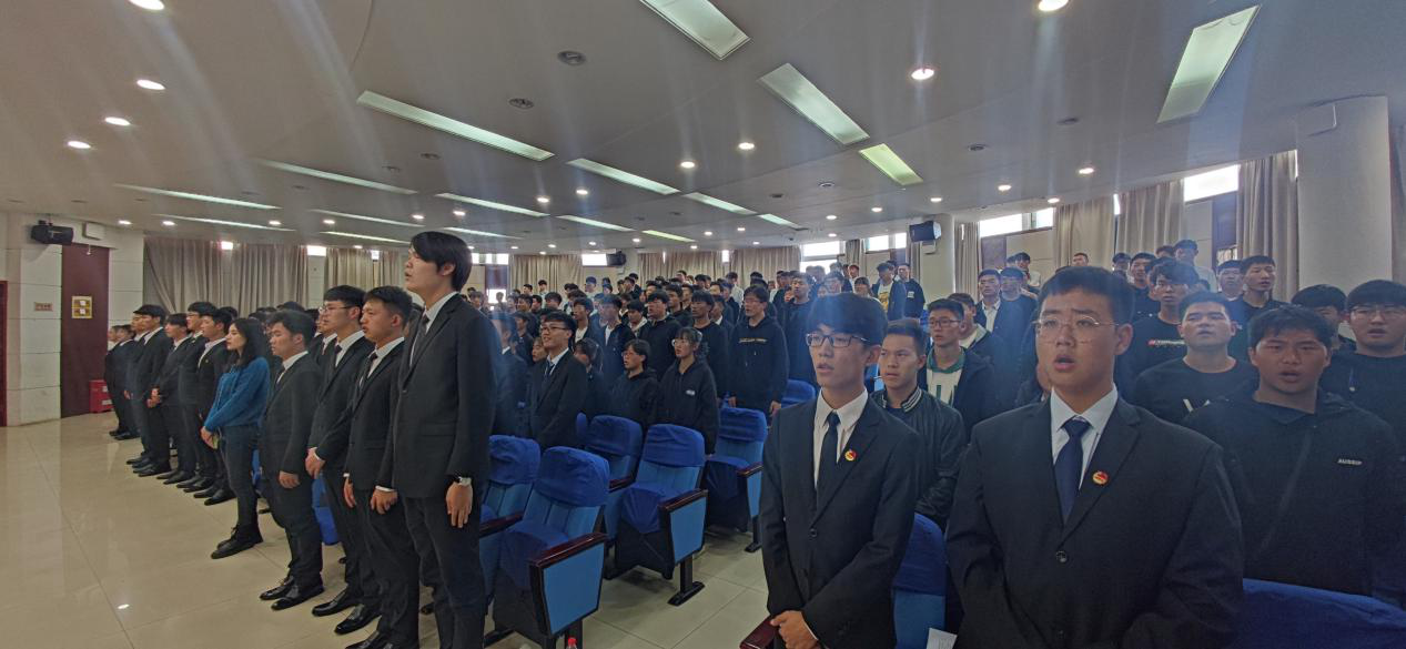 新当选的第十三届学生会主席团成员张宇宣读《致全体同学倡议书》号召全校团员青年要勇敢地担负起历史赋予的新使命,以实际行动为学校、学院建设奉献青春、智慧和力量!