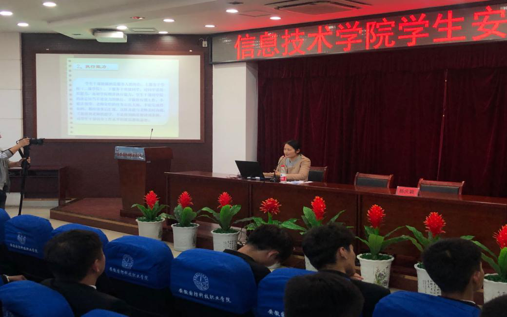 本网讯(信息技术学院 孙颖凯)2020年11月14日,信息技术学院与图书馆报告厅召开学生安全教育大会,本次会议由信息技术学院党总支副书记杨庆颖主持。