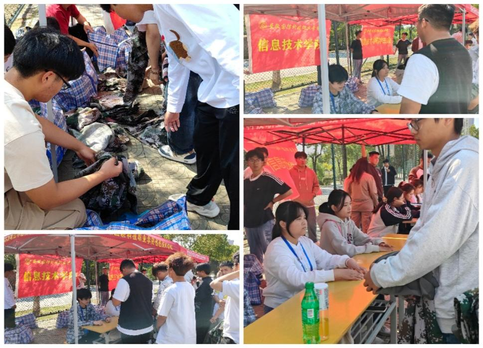 本网讯(信息技术学院 学生会)为提高大学生的社会责任感,大力弘扬艰苦奋斗、勤俭节约的中华民族优良传统。信息技术学院学生会于10月9日下午,在学院操场上成功举办了一场意义非凡的“‘衣’脉相承,温暖循环”公益主题活动,旨在将军训服转赠给亟须帮助的人群。