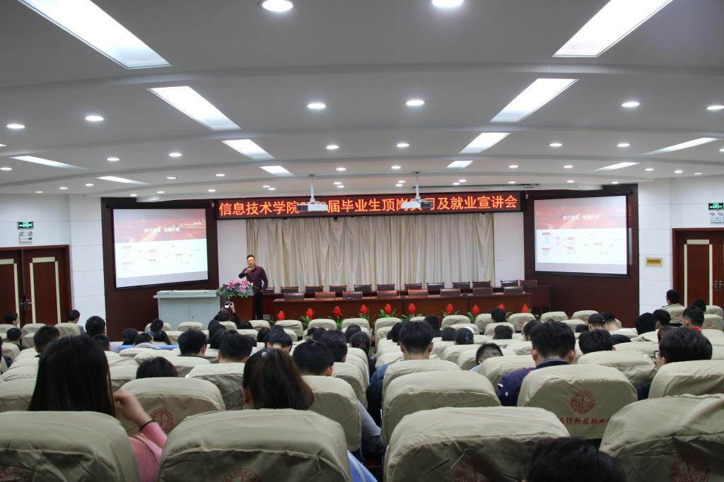 11月3日上午,信息技术学院专场校园双选会在二号教学楼顺利举办,我院2019届200余名毕业生参加了本次专场双选会。为帮助企业和同学们实现真正的双选,11月2日晚6:30至8:30,我院在图书馆报告厅举办了双选会企业的专场宣讲会,17家企业依次进行宣讲。