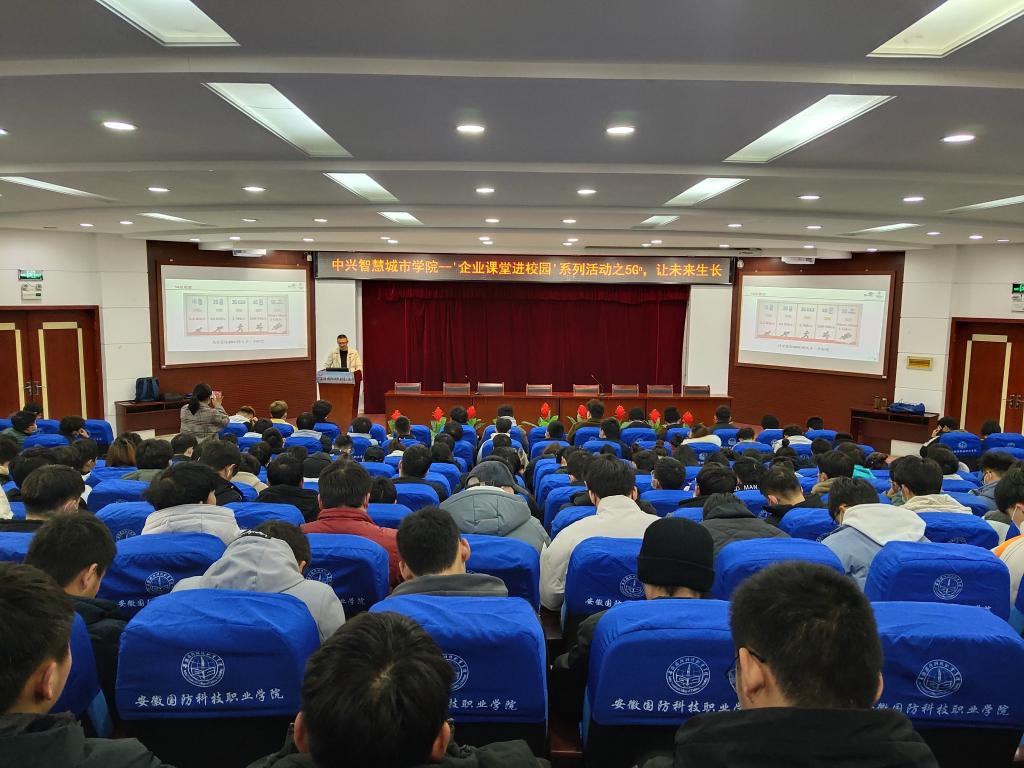 本网讯(信息技术学院 中兴智慧城市学院)为深化“校企合作”人才培养模式,突出校企合作专业的企业特色,为学生搭建与企业面对面的交流平台,丰富学生们的学习内容和学习成果,进一步提升教学实效,信息技术学院-中兴智慧城市学院联合中国联通六安市分公司,组织了为期2天的“企业课堂”系列实训活动,活动包括校外基站参观学习、中国联通核心机房调研、5G网优路测实操实训等,并邀请了中国联通六安市分公司云网交付中心总经理张克来,为学生们做《5Gⁿ,让未来生长》的专场讲座。