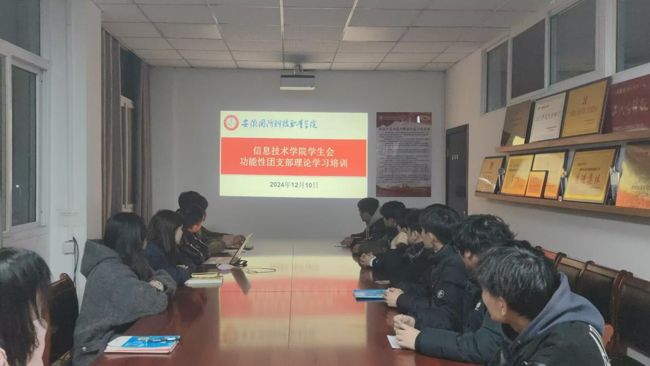 本网讯(学生通讯员 陈朝旭)为深入学习贯彻习近平新时代中国特色社会主义思想,强化青年团员思想政治引领,提升团支部凝聚力,信息技术学院学生会于12月10日晚在知行楼304会议室召开了功能型团支部理论学习会。