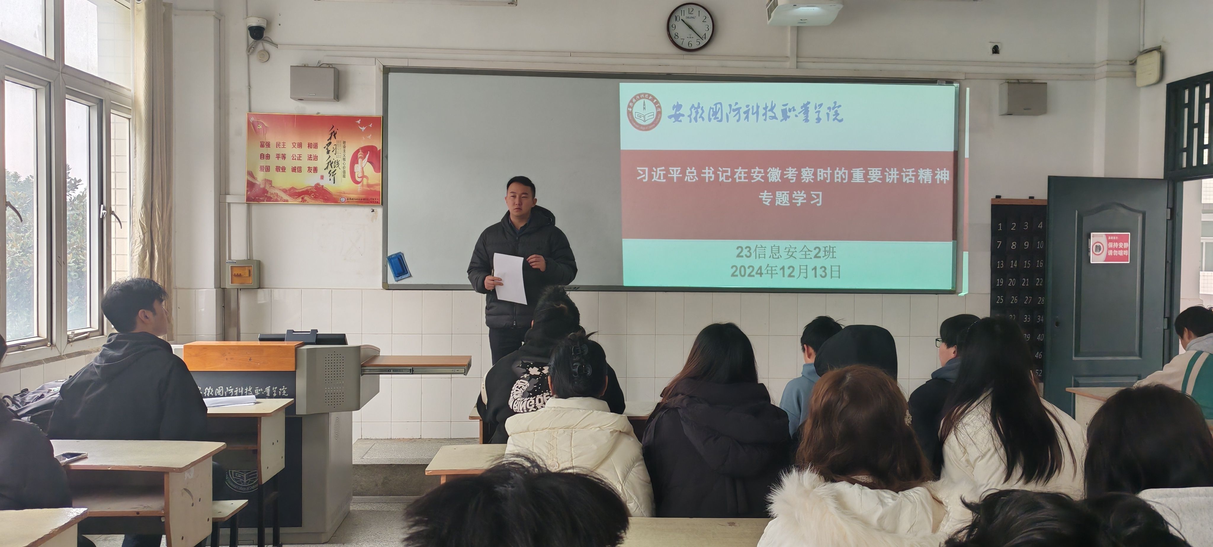首先,孙颖凯带领全体同学学习了习近平总书记考察安徽重要讲话精神,他强调,总书记在安徽考察时的重要讲话为广大青年学子提供了宝贵的思想指导和行动指南。大家应深入学习领会这些重要精神,并将其转化为实际行动,为实现中华民族伟大复兴的中国梦贡献自己的力量。