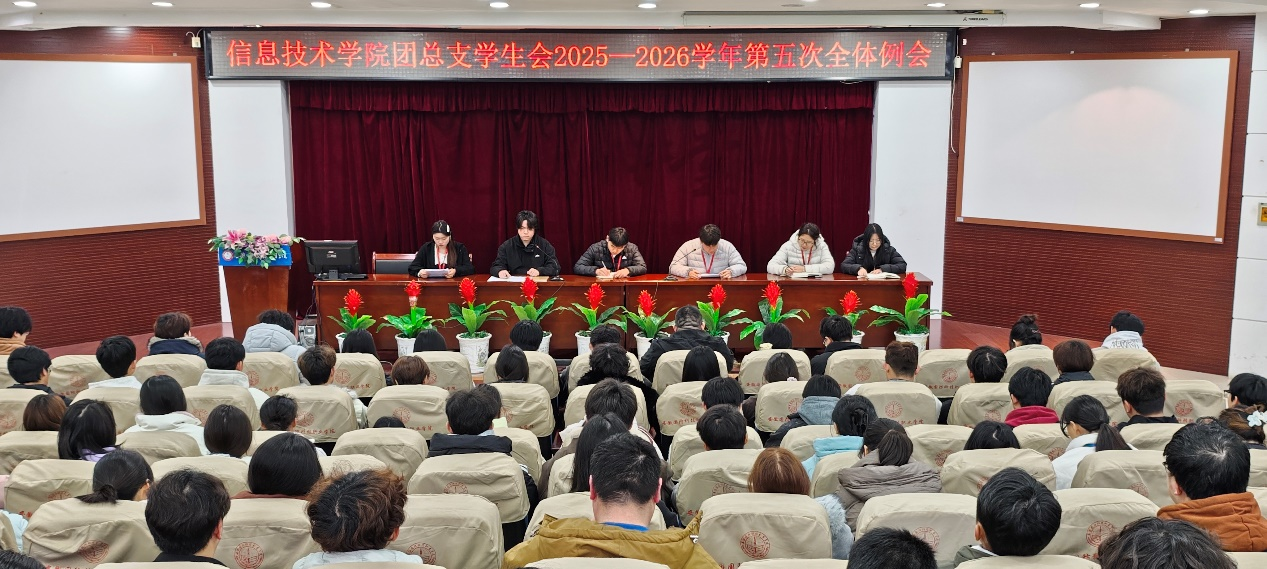 本网讯(学生通讯员 吴童周)为总结前期工作成效,明确新学期工作方向,强化队伍建设与责任担当,严肃纪律作风,推动学生会工作高质量开展,信息技术学院团总支、学生会于3月16日在图书馆报告厅召开2025-2026学年第五次全体例会。会议由学生会主席团成员纪涛主持,学院团总支、学生会全体成员参会。