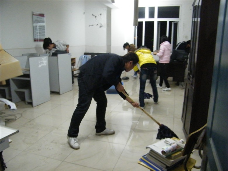 年12月9日晚,本系部分团支部成员为迎接评估专家的到来,对2号教学楼5楼办公室进行卫生义务大扫除。