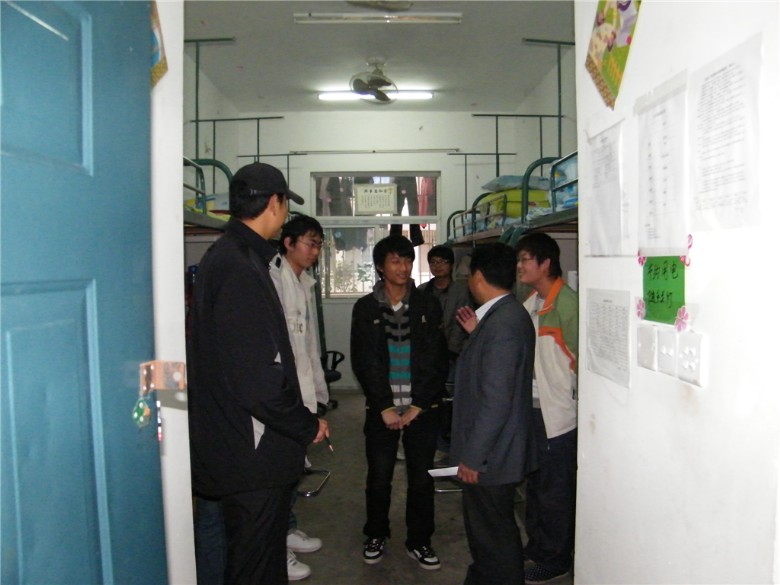 为迎接评估,展现我系文明风貌,12月12日下午系党总支工作人员带领各级辅导员、班主任对我系在校学生公寓进行了安全卫生突击大检查。