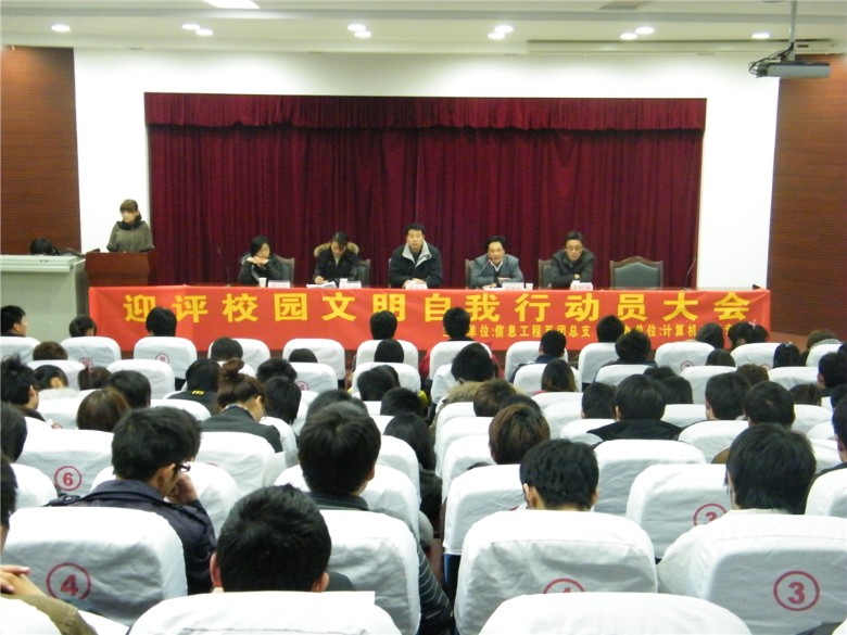 为以实际行动迎接评估,展现我系学子的精神风貌,由本系计算机应用技术专业发起、全系学生自发参与的文明主题活动于12月6日晚7点半在报告厅隆重开幕,系党总支书记梁继会、系团总支书记张伟业和09、10级计应专业各班班主任应邀出席了开幕式。