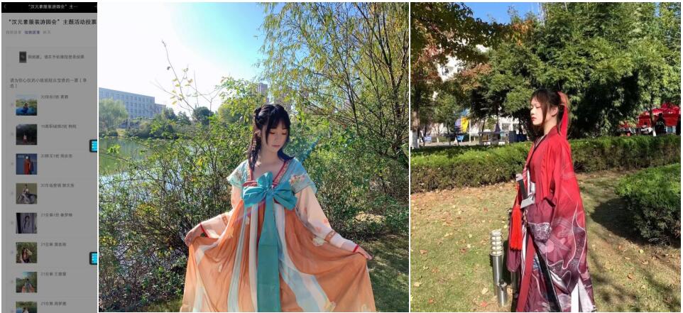 为应对疫情防控要求,为丰富学院文化及业余生活,感受汉元素文化的魅力,动漫协会在2021年11月24日下午两点在学校操场举办汉元素服装游园会活动。
