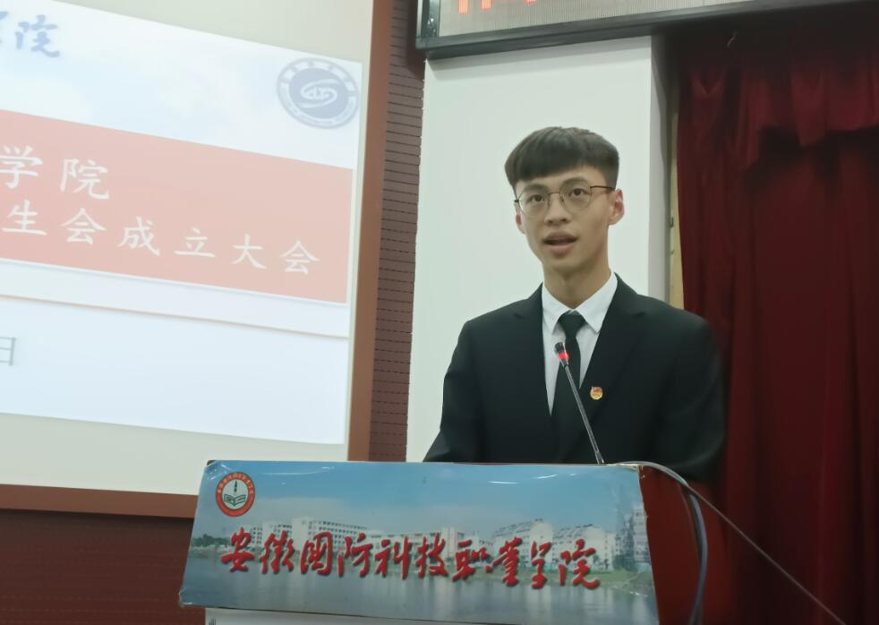 新当选的第十四届学生会主席团成员圣俊杰宣读《致全体同学倡议书》号召全校团员青年要勇敢地担负起历史赋予的新使命,以实际行动为学校、学院建设奉献青春、智慧和力量!