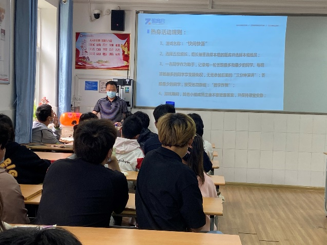本次实训活动课由两个部分组成。第一部分为“快问快答+数字炸弹”游戏环节,旨在通过全员参与的游戏,调动同学们的积极性,缓解紧张情绪,主动参与到课堂中来。第二部分为“三分钟演说家”活动,该活动是基于本学期的职素课程主题之一:《表达力训练》而发起的,既能帮助同学们回顾网课内容,也能提升实地锻炼同学们的表达力。