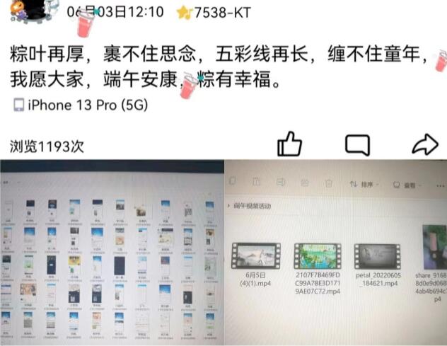 粽子飘香,端午佳节到身旁。农历五月初五端午节,是中华民族古老的传统节日之一,更是我国的特色文化。为了让同学们了解端午节的风俗习惯,增强传统节日的文化气息,提高同学们对中华传统节日的认同感。在端午来临之际,信息技术学院举办了“端午节线上云祝福”、“品味端午,传承文明”端午节摄影等活动。虽受疫情影响,师生之间无法齐聚一堂,但线上活动更加多元化、更富新意。端午活动中学生与老师共享欢乐、收获温暖。