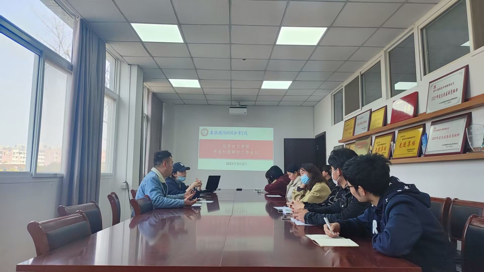 本网讯(信息技术学院 孙颖凯)为进一步规范信息技术学院挂靠学生社团组织建设,增强学生社团组织凝聚力,促进学生社团持续、稳定、健康发展。3月2日中午,信息技术学院团总支在知行楼304会议室召开院属学生社团期初工作会议,院团总支书记、计算机协会指导老师孙颖凯主持会议,动漫协会指导老师沈扬、计算机协会、动漫协会主要学生干部参加了本次会议。