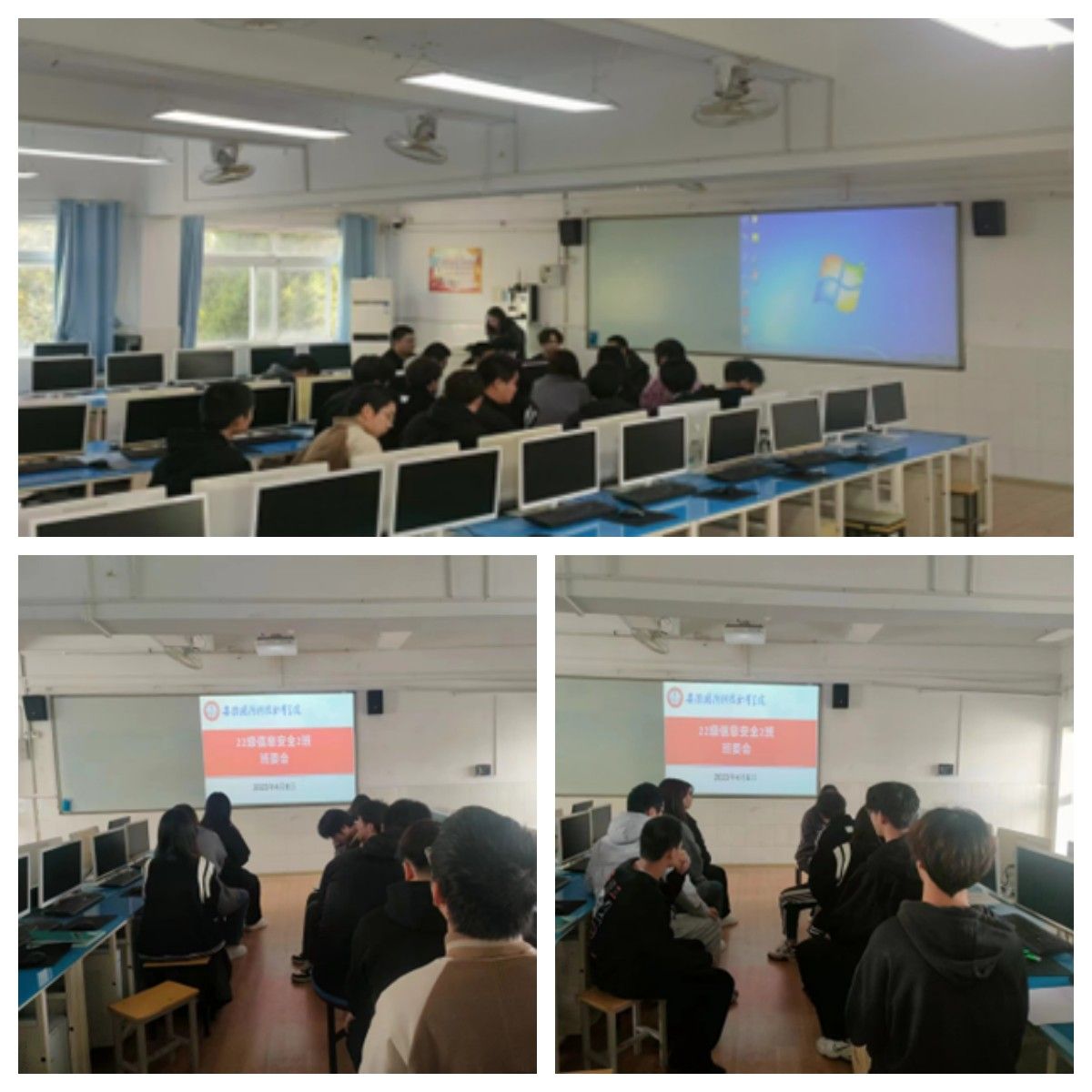 本网讯(信息技术学院 孟璐璐 杜洪宇)4月6日下午,22级信息安全技术应用专业全体班委于一教212机房召开班委例会,会议由班级辅导员杜洪宇老师和校企辅导员孟璐璐老师共同主持。此次会议旨在促进师生之间的交流,增强全体班委为班级服务的使命感;同时,了解、解决班委在日常班级管理中发现的问题和困难,倾听大家对班级建设的意见和建议,增强班集体的凝聚力,向着先进班集体的创建而努力。