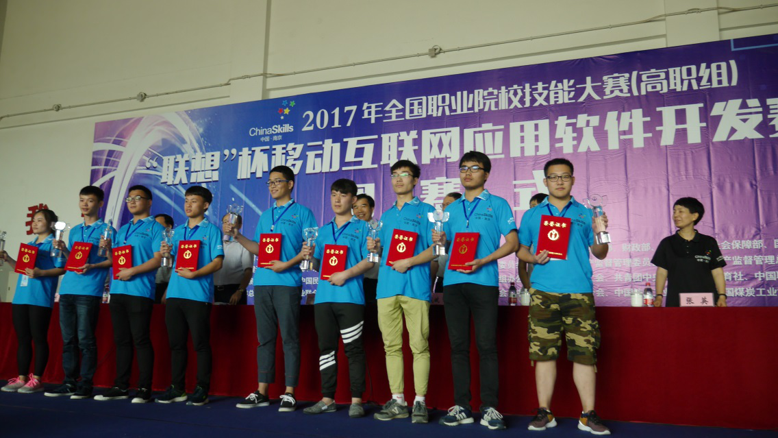 崔亮(右一)获得全国职业院校技能大赛一等奖