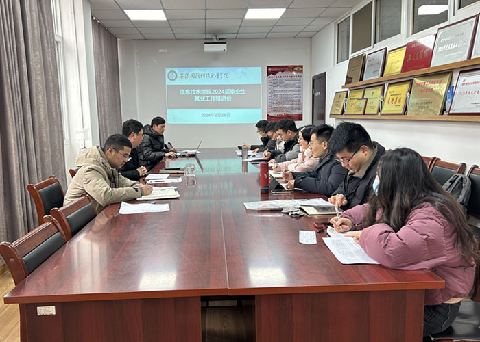 (本网讯 韦志魁)2月26日下午,信息技术学院在知行楼304会议室召开2024届毕业班全体专兼职辅导员会议,启动2024届毕业生就业工作。信息技术学院党总支书记王胜、信息技术学院党总支副书记杜洪宇出席会议,会议由就业专项辅导员韦志魁主持。