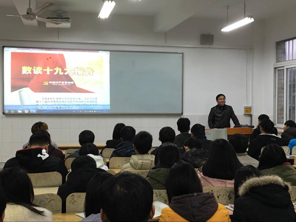 校党委委员、组织人事处处长付贤政参加17软件1班学贯十九大精神主题班会