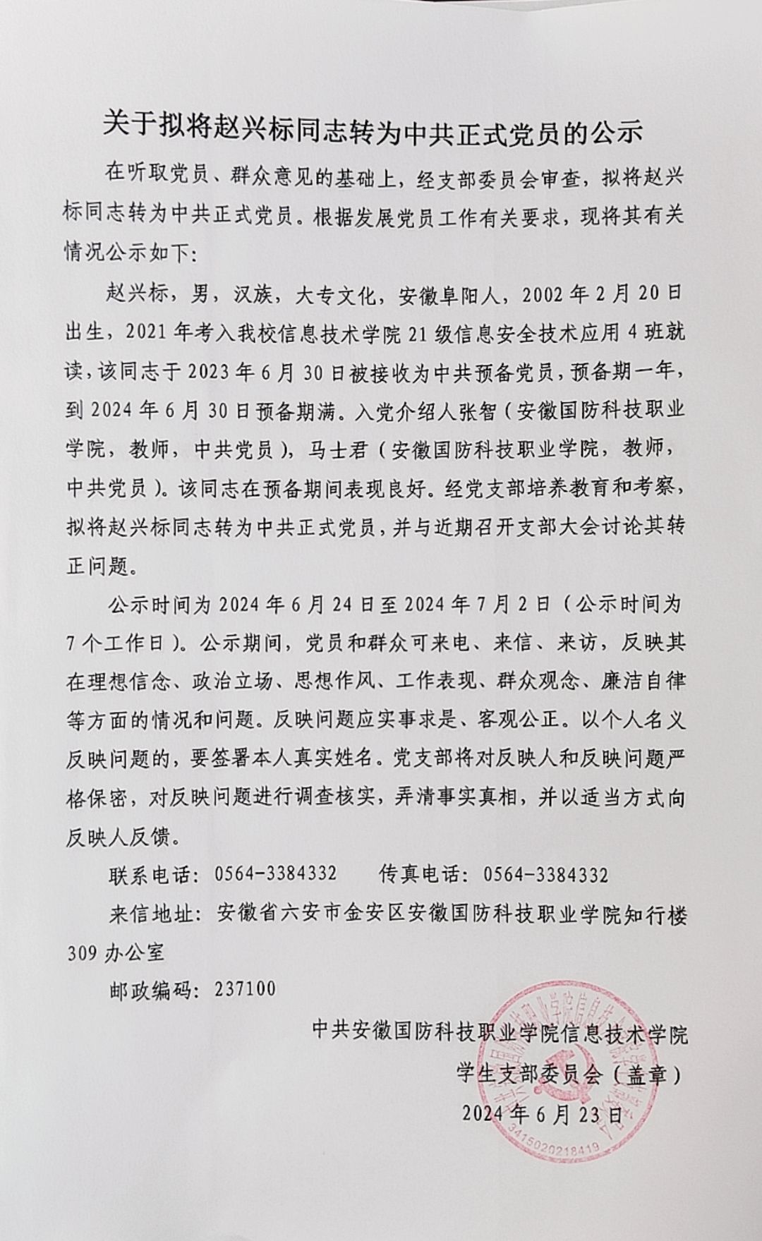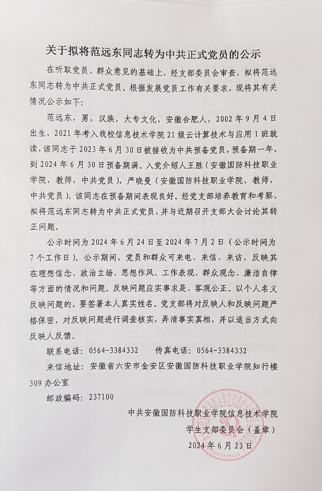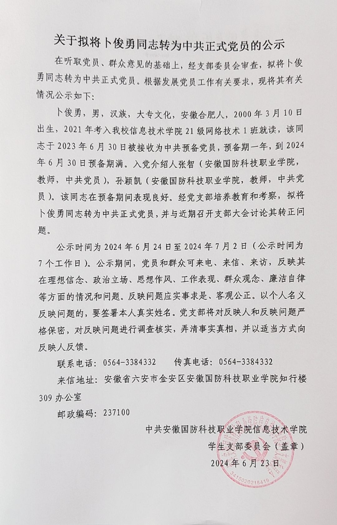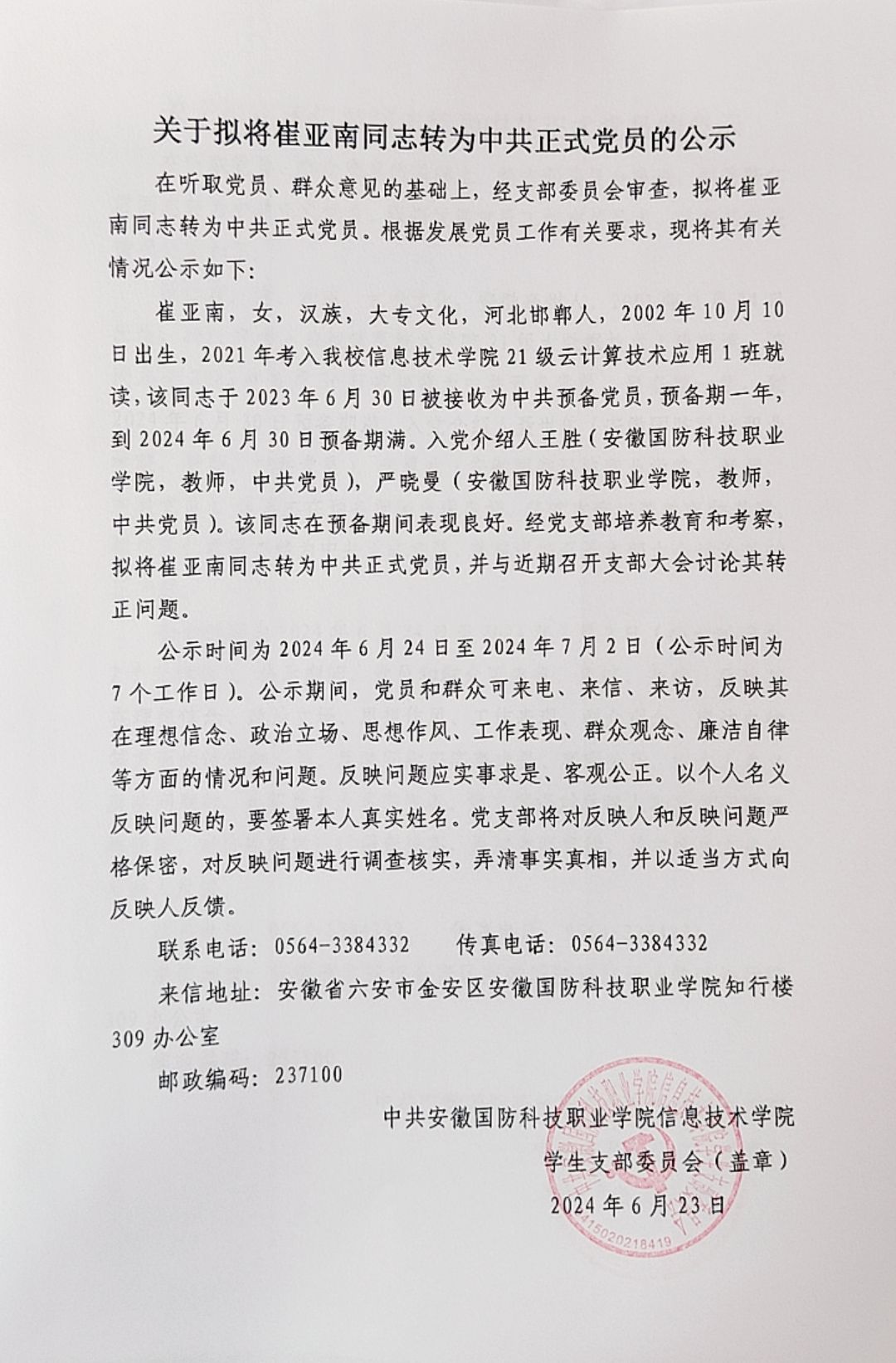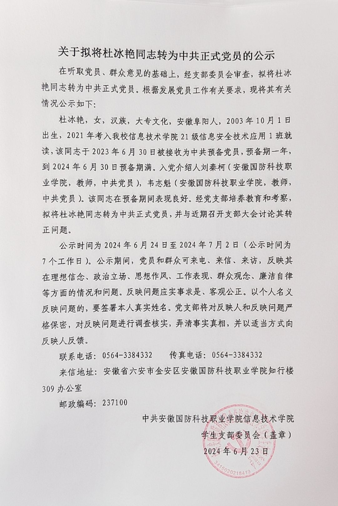 关于拟将陈仁君等14名同志转为中共正式党员的公示