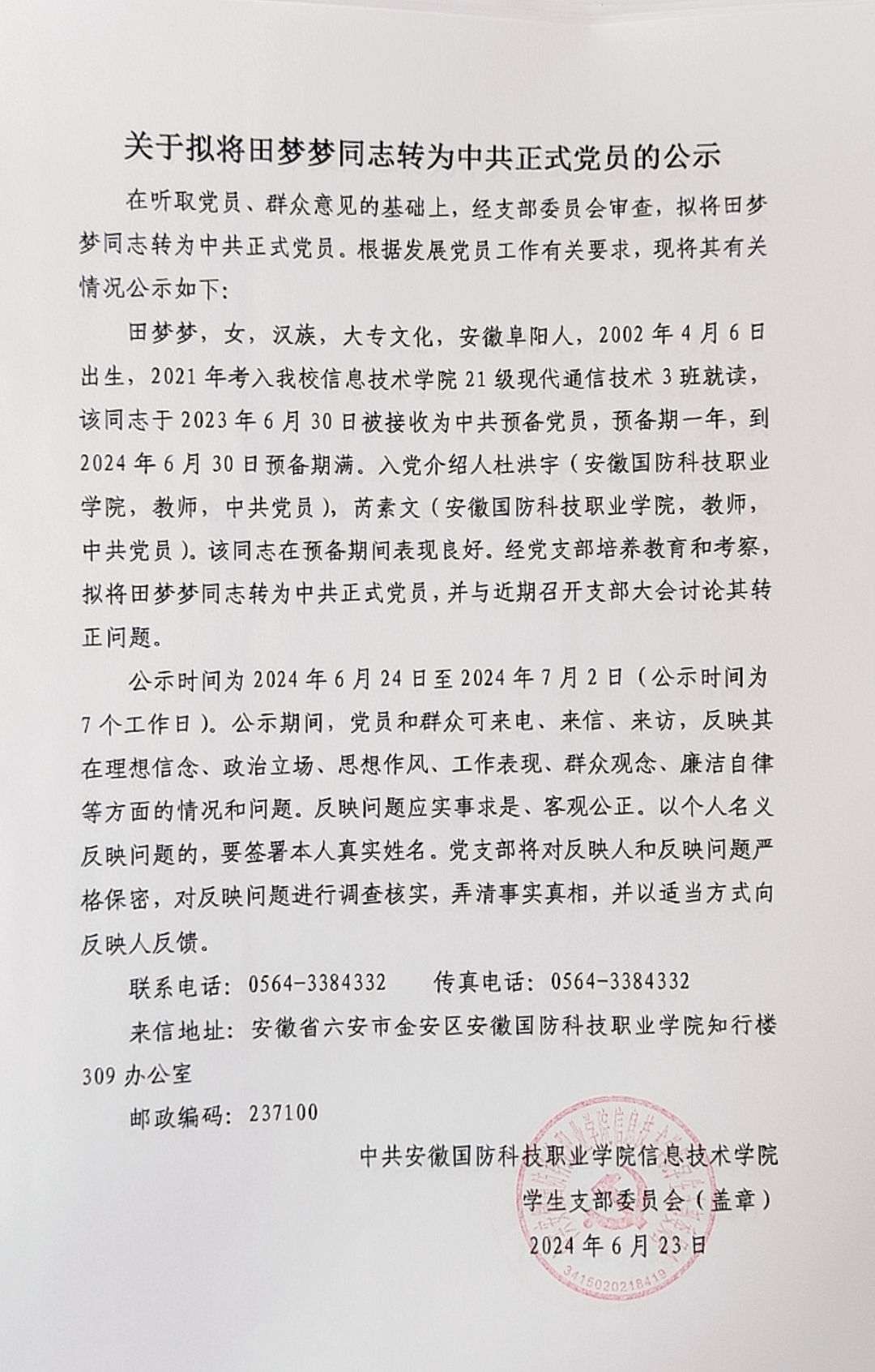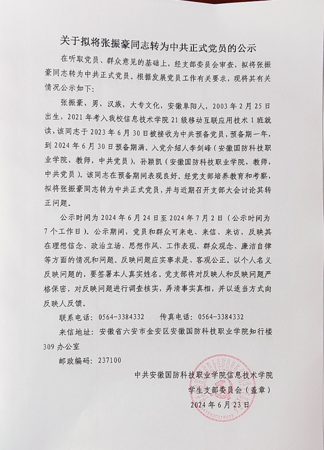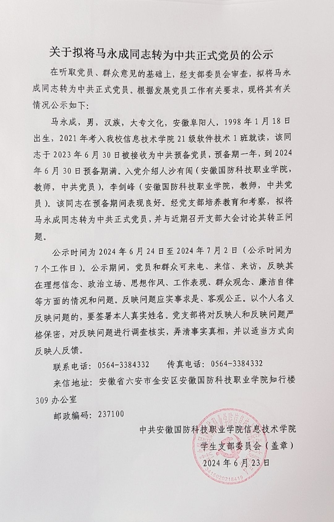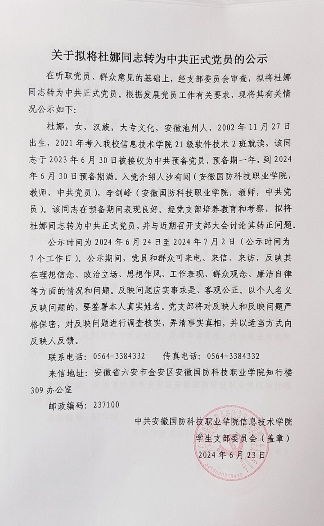关于拟将陈仁君等14名同志转为中共正式党员的公示