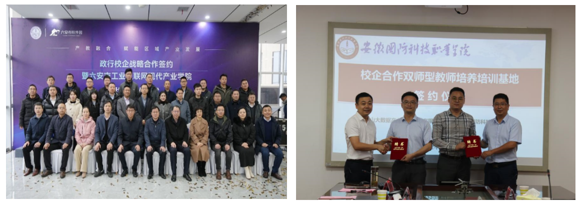 近年来,学校逐步深化落地“政产学研用”人才培养模式。学院陆续获批安徽省“校企合作示范实验实训中心”、“产教融合实训基地”、“虚拟仿真实训基地”、“现代学徒制试点”、“教师企业实践示范流动站”、“人工智能技术应用创新教学团队”等建设培育项目。自2018年起,校企合作成果先后荣获安徽省校企合作典型案例一等奖、二等奖若干项。