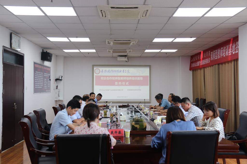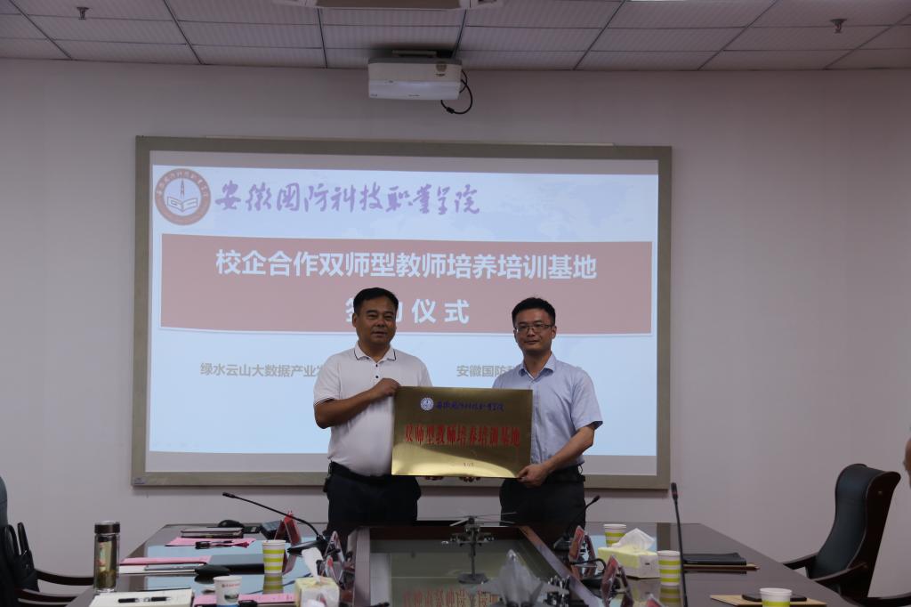 6月22日上午,万象城体育awcsport与六安市绿水云山大数据产业发展股份有限公司校企合作双师型教师培养培训基地签约授牌仪式隆重举行。六安市绿水云山大数据有限公司董事长宋长安、技术部经理高杨、综合部经理朱玛等一行6人出席了本次仪式,万象城官网党委副书记、校长李麟书、质管办主任黄存东、组人处处长付贤政、信息技术学院院长沙有闯、信息技术学院党总支书记王胜等参加了签约仪式,会议由信息技术学院副院长雷惊鹏主持。