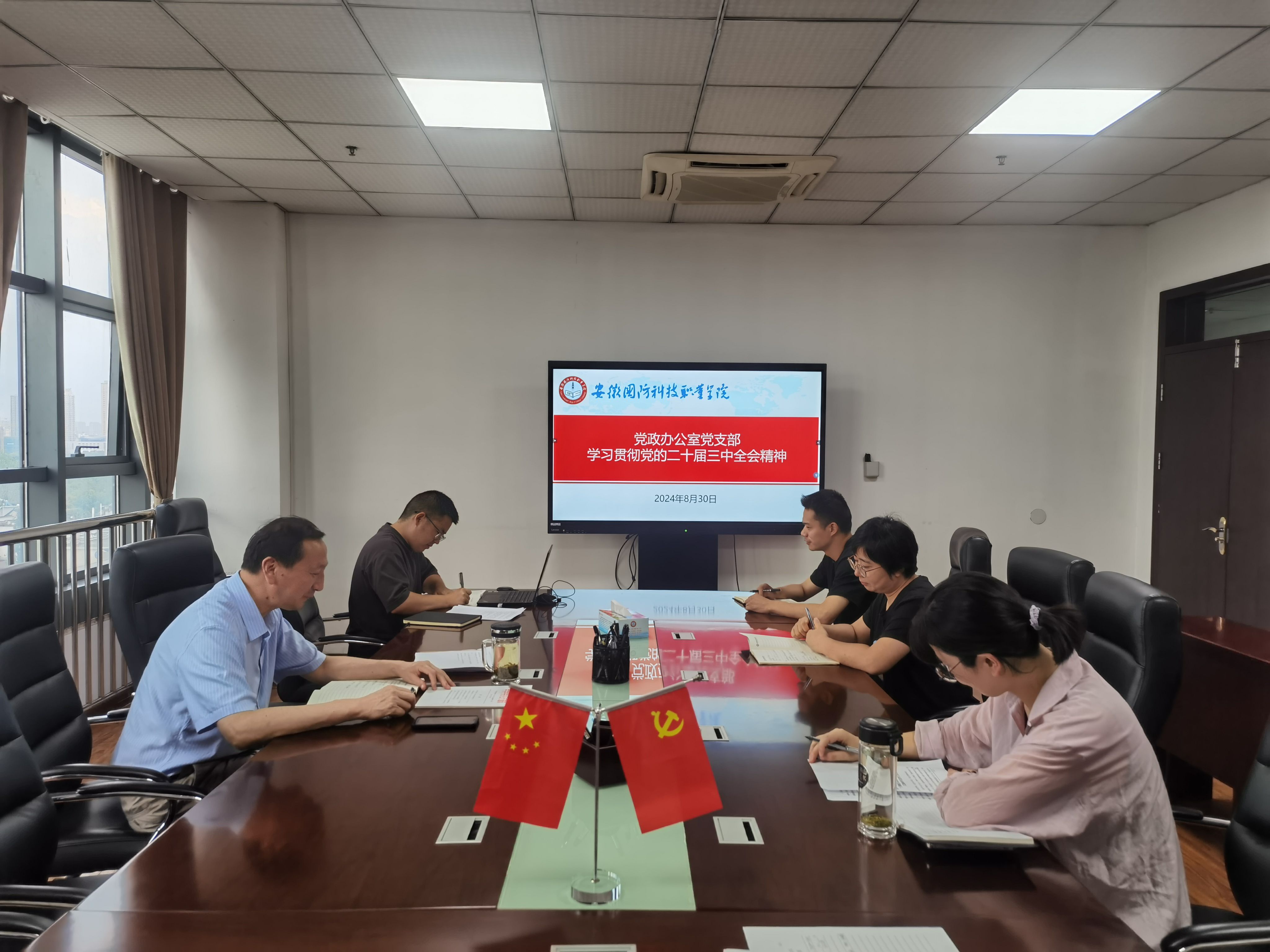 2024年8月30日,党政办公室党支部在党委会议室开展主题党日活动,深入学习贯彻党的二十届三中全会精神。会议由党支部书记李大武主持,全体党员参加学习。