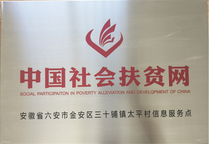 中国社会扶贫网授予学校帮扶村的铜牌
