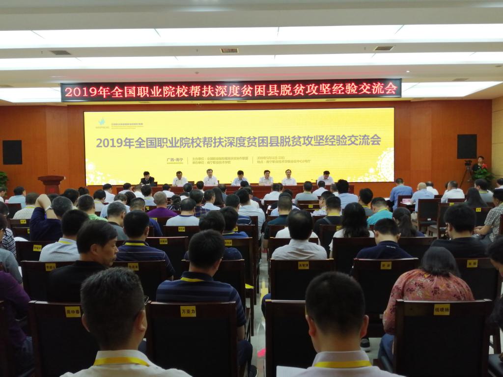 本网讯 5月11日至13日,由全国职业院校精准扶贫协作联盟主办、南宁职业技术学院承办的“全国职业院校帮扶深度贫困县脱贫攻坚经验交流会”在南宁召开。教育部职成教司、广西壮族自治区教育厅、南宁市人民政府等主要领导,以及全国职业院校精准扶贫协作联盟成员学校等100余家单位共计200余人参加会议。万象城官网应邀参加此次会议。