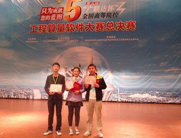 11月17日至19日,第五届全国高等院校广联达算量软件大赛总决赛在厦门理工学院隆重举行,我院管理工程系教师王红林指导的陈林、王璐璐、席小东三位同学组成的代表队在经过7个小时的激烈角逐,最终以细心算量、合作计价争分夺秒的团队合作喜获佳绩,在全国共有200多所高职院校、本科院校中勇夺三等奖。