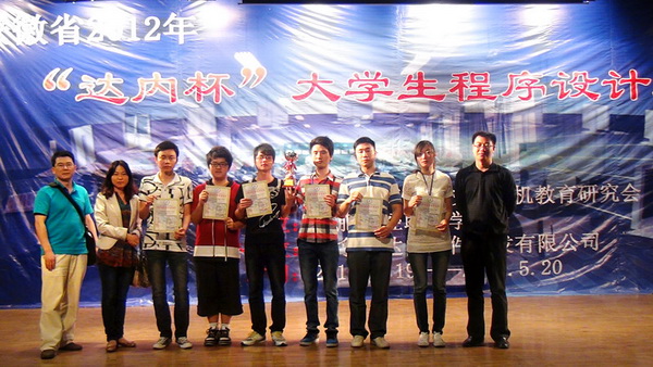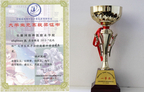5月19日至20日,由安徽省高等学校计算机教育研究会主办的安徽省2012年“达内杯”大学生程序设计大赛在合肥财经职业学院举行,经过5小时的紧张比赛,我院信息工程系仰泽星、陶军、付翠翠三位同学组成的ahgfmax队取得高职高专组第一名(本专科总排名第七名)的好成绩,这也是我院代表队在该项赛事上连续两年获得冠军称号。院的另外一支队是由11级软件技术专业的刘帆、林泳波、王鹏组成的ahgf012队,也取得了优胜奖,积累了宝贵的参赛经验。比赛的指导教师为盛安元、芮素文、付贤政。