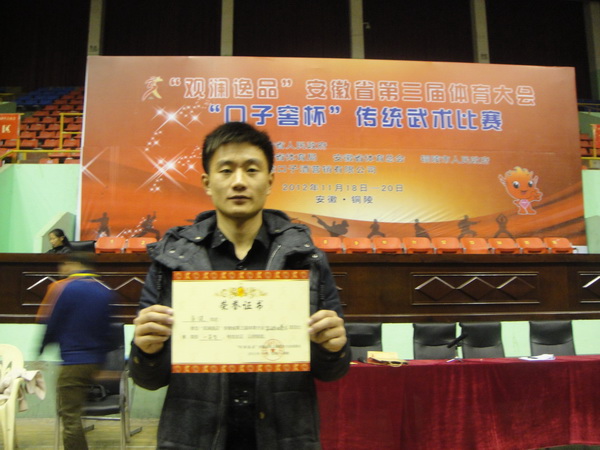 11月中旬,在安徽省体育大会上,吴健同学凭借扎实的功底再次斩获丙组男子其他拳术一等奖和丙组男子双器械二等奖。